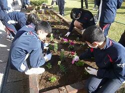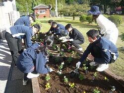 6校時目に花壇の花植を行いました。南郷活気粋協議会の方に植え方のこつなどをご指導いただきながら、各クラス配置を工夫して植えました。12日(金)の参観日にゆっくりご覧ください。