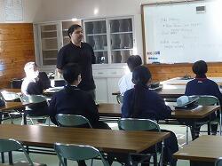 3年生はALTのアーロン先生も一緒でした。アーロン先生はなんと半袖です。