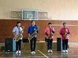 11/10(日)、地域の敬老運動会が行われ、音楽部及び音楽活動をしている児童生徒が、演奏を披露しました。運動会の楽しい雰囲気のまま、地域の皆様に温かく迎えられ、児童生徒はいつにも増してのびのびと演奏できました。最後にはアンコールのかけ声をいただき、うれしそうに応える4人でした。