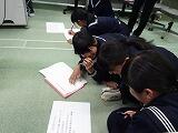 5校時は2年生がしおり作りの仕上げを行いました。自分たちで調査した見学先の資料や班で決定した自主研修のコースなどが盛り込まれたページ1枚1枚を、丁寧に綴じていました。仕上げは、旅先でのチケットやリーフレットを入れるポケットの取付です。作業中の表情には、わくわく感があふれていました。このポケットに思い出をたくさん詰め込んで帰ってくることでしょう。