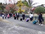今回の中学生は、前回の2倍の距離を走りました。入念な準備運動の後、早速出発。小中学生互いに応援し合い、その声が励みになったようです。途中苦しそうな場面もありましたが、全員見事に完走しました!