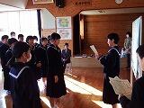 3/13(金)、登校日です。久しぶりに会えた生徒の皆さんの表情は晴れやかで、安心しました。今日は、3年生の最後の表彰を、全校集会の代わりに教室で行いました。また、卒業を控えた3年生に、1・2年生よりお礼の気持ちをこめて、メッセージカードが贈られました。そして3年生からは、先生方一人一人に色紙が手渡されました。卒業式の足音が聞こえてきた数時間の出来事でした…。