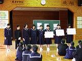2/13(木)、生徒集会が行われました。はじめに善行児童生徒が表彰され、女子バレーボール部の大会準優勝の賞状が校納されました。おめでとうございます。続いて、次年度に向けての心構えについて、3年生からの助言を参考に、1・2年生が3学期中に実行できることを各自で考えるといった取組を行いました。学習面や生活面の課題に真摯に向き合う生徒たちでした。