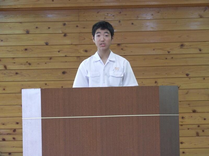21日(金)、宮崎県中学校総合体育大会の推戴式をしました。榎原中伝統の全校エールで選手を激励しました。今回は陸上競技に3名が出場します。日頃はバレーの練習をしていて、陸上の練習の時間は決して多くないのですが、これまで集中力と気力で頑張ってきました。南那珂地区代表として堂々と走りぬいて下さい。競技は24日(月)、宮崎県総合運動公園で行われます。全力応援します!!