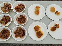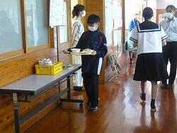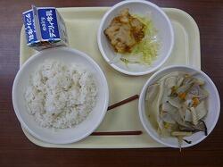 今日の給食は「減量麦ごはん、だんご汁、とり天、キャベツ」でした。今日は「日本全国味の旅~大分県~」の日でした。宮崎県の北にある大分県の郷土料理です。だんご汁に使っている平たい麺は「やせうま」とも言われ、大分ではきなこにつけてデザートで食べることもあります。とり天は唐揚げとは違い、ふんわりとした衣がポイントです。