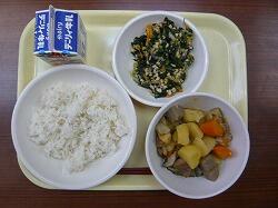 今日の給食は「麦ごはん、鶏肉とじゃがいものうま煮、納豆和え」でした。今日は納豆の日(7月10日)でした。今日もおいしくいただきました。ありがとうございます。