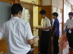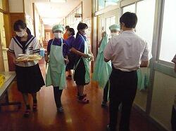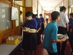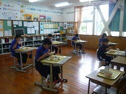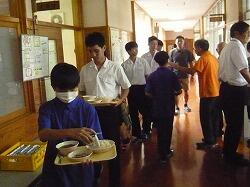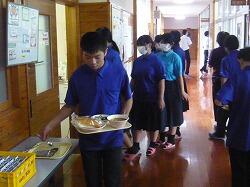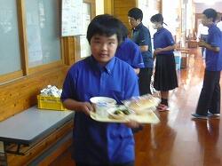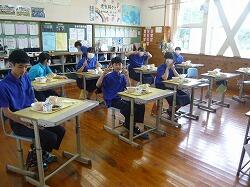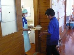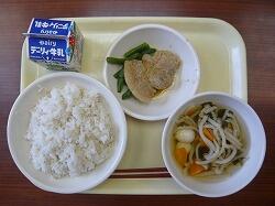 今日の給食はふむか地産地消の日で「まる麦ごはん、魚うどんのすまし汁、豚肉のみそステーキ、いんげん」でした。今日もおいしくいただきました。ありがとうございます。