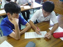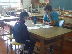 1年生の英語の授業です。ALTの先生に一人ずつ発音を指導してもらっています。緊張します‼