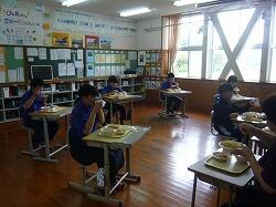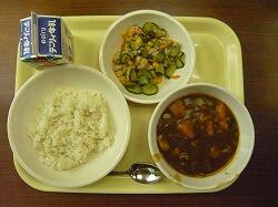 今日の給食は「麦ごはん、夏野菜カレー、大豆とツナのサラダ」でした。今日もおいしくいただきました。ありがとうございます。