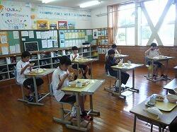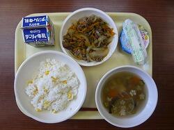 今日の給食は七夕行事食で「とうもろこしごはん、七夕汁、牛肉のしょうが焼き、星のソーダゼリー」でした。今日もおいしくいただきました。ありがとうございます。