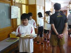 今日の給食は「麦ごはん、ABCスープ、焼き春巻き、きゅうり」でした。今日もおいしくいただきました。ありがとうございます。