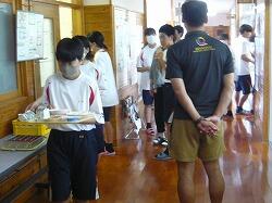 5時間目に日南市内の体育の先生方が来校され、2年生のバレーボールの授業を参観されました。ルールを工夫して、みんなが楽しめるバレーボールはどうあればよいかという課題に挑戦しました。