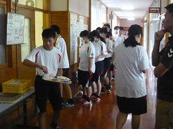今日はフッ化物洗口の日でした。写真は1年生です。