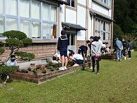 今年度も榎原中学校の入り口に立派な門松を飾ることができました。この門松づくりでは、地元の河野孝行さんが中心となって竹の切り出しから設置までしていただきました。最後の飾り付けでは中学1年生も参加して完成させました。