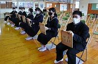3年生が卒業し、全校生徒13名での修了式でした。式ではまず、各学年の代表が1年間の反省と次年度に向けた抱負を発表しました。その後、学校長より各学年の代表に修了証書が授与されました。