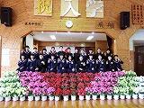 緊張しつつも堂々とした態度で入学式を終えた新入生。先輩方と一緒の写真撮影で、ようやく笑顔になりました。これからの3年間、授業や部活動をはじめ、さまざまな学校行事等を通して、多くのことを学んでいくことでしょう。先生方、先輩方とともに頑張りましょう!