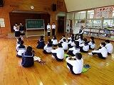 6/5(水)、学校栄養職員の方が来校し、給食後1年生に「中学生に必要な栄養」と題して、講話をしていただきました。健康を維持し、成長するために必要な栄養素やエネルギーについて説明され、最後に「給食はそれに見合って作られています。しっかり食べてください」としめくくられました。生徒たちは改めて給食をはじめとする食事の大切さを学んだようです。学習と部活動を両立させるエネルギーを、これかもしっかり蓄えていきましょう!
