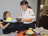 4/25(木)、今年度初めての交流給食でした。いつもと違う顔ぶれ、いつもと違う場所での食事に、少々緊張気味の生徒たち。しかし、そんな場面だからこそ、マナーを意識したり時間を守ったりして食事をとることができたようです。