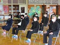 式では、2年生が職場体験学習の成果と自分の名前の由来について
