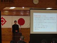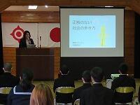 3年生の激励のことばの後、教育プランナーの羽田野様を講師に招