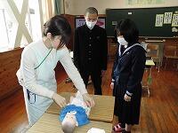 びました。2年生の授業では、ダミー人形を使って抱っこのしかたやおむつ