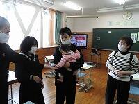 交換を体験しました。次に育行中の本校の職員に赤ちゃんと一緒に参加して