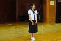 県中体連秋季体育大会の選手推戴式が行われました。本校からは、バドミントン女子シングルスに、先の地区大会で2位となった山口依智子さんが出場します。全校生徒がエールを送って激励しました。