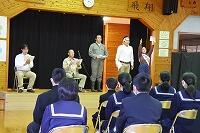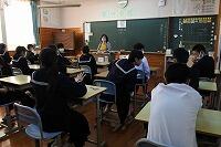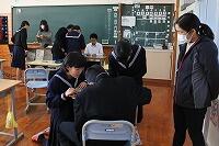 日南市の地域包括支援センターから講師を招いて、3年生が認知症サポーター養成講座を実施しました。認知症の方との接し方などを、具体的な事例を通してわかりやすく学ぶことができました。