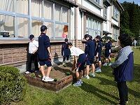 昼休みに全校生徒で陣取りゲームを楽しみました。持久走大会に向けた体力作りの一環で、新生徒会が企画しました。男女対抗のゲームでしたが、女子に軍配があがっていたようです。