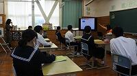 令和3年度の新入生説明会を実施しました。榎原学校以外からも1名の参加があり、合計4名でした。5校時は、1年生から3年生の授業を順番に見学しました。顔見知りの先輩ばかりだったためか、席の側まで近寄って学習の様子をのぞき込んでいました。6校時は学校の説明でしたが、生徒会役員の4名も参加して、学校紹介をしてくれました。