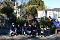 今年度も榎原中学校の入り口に立派な門松を飾ることができました。この門松づくりでは、地元の河野孝行さんが中心となって竹の切り出しから設置までしていただきました。最後の飾り付けでは中学1年生も参加して完成させました。
