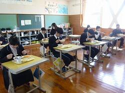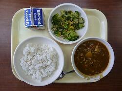 今日の給食は「まる麦ごはん、ポークカレー、ブロッコリーサラダ」でした。今年度の給食もいよいよ明日までです。今日もおいしくいただきました。ありがとうございます。