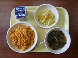 今日の給食は「チキンライス、春雨スープ、コーンスローサラダ」でした。今日が今年度、最後の給食でした。いつも栄養面を考た献立を作成していただき、成長期の中学生にはたいへんありがたかったです。また、4月からよろしくお願いします。今日もおいしくいただきました。ありがとうございます。