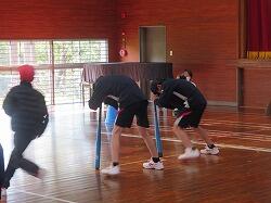 団決めでは、小中学校それぞれの団長が活躍しました。生徒会が趣向を凝らし、ランニングあり、バットくるくる回りあり、バスケットゴールへのシュートあり、小学生を含めて全員で楽しめました。
