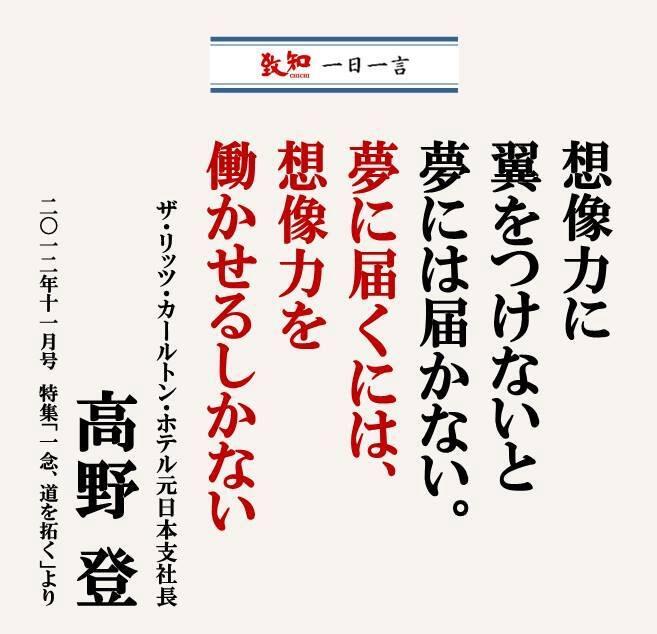 ザ・リッツ・カールトン・ホテル元日本支社長の高野登さんは、“想像力に翼をつけないと夢には届かない。夢に届くには、想像力を働かせるしかない。”と言っています。