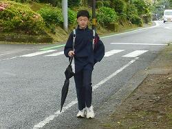 今朝の登校の様子です。今日も元気に登校してきました。大雨にならずよかったです。