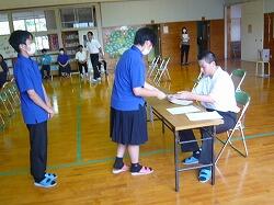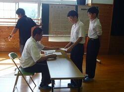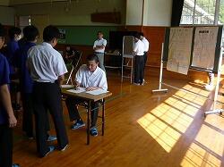 5校時目に生徒会役員選挙を行いました。選挙管理委員からの説明後に、6名の立候補者が演説をしました。どの立候補者も自分の考えを堂々と述べることができて、榎原中の今後を考えた素晴らしい内容でした。以下は選挙の様子です。