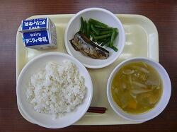 今日の給食は「麦ごはん、かぼちゃのすいとん、いわしのかぼすレモン煮、いんげん」でした。今日もおいしくいただきました。ありがとうございます。