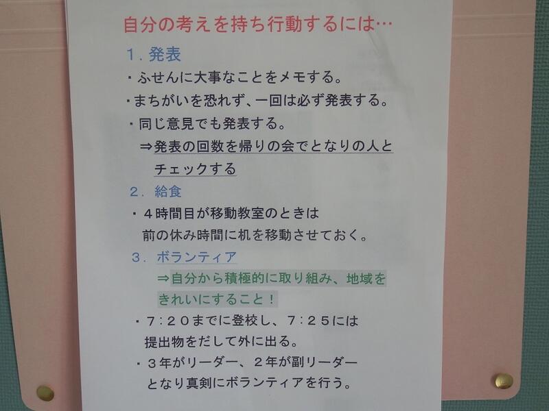 生徒総会が終わって1か月。先日の生徒集会で、生徒会長が下のプリント(「自分の考えをもち行動するには」)を生徒に配付し、グループに分かれて総会後の自分たちの姿を見つめ直しました。何事もそうですが、決めることも大事ですが、もっと大事なことは決めたことを行動に移し続けることです。この集会でみんなで確認したことを意識して、取り組んでいきましょう。