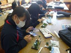 1年生は「みやざき学習状況調査」をしています。タブレットを使います。3年生は美術で、オルゴールの木箱に模様を彫っていました。2年生は美術でイメージを形にということでジオラマをつくっていました。