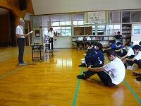 本日5校時目に生徒総会が行われました。まずは生徒会長のあいさつです。