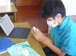 火曜日はフッ化物洗口の日です。口に含んでブクブクしているところです。