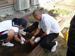 3年生が学校園で育てていた「さつまいも」を掘り起こしました。なかなか掘り起こせませんでしたが、大きいものや何かの幼虫やら出てきて大盛り上がりでした。いい経験ができました。