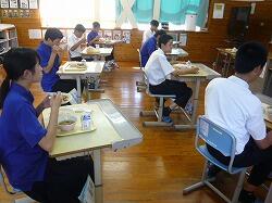 今日の給食は「麦ごはん、ワンタンスープ、鶏肉のレモン煮、きゅうり」でした。今日もおいしくいただきました。ありがとうございます。