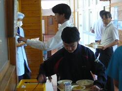 今日の給食は「麦ごはん、ラビオリスープ、鶏肉と野菜のチーズソース焼き」でした。午前中予行練習でずっと運動していたので、今日の給食は一段とおいしくいただきました。