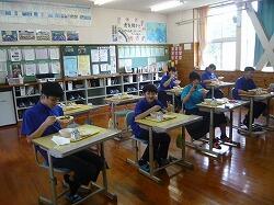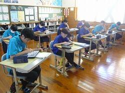 テスト二日目の様子です。テスト勉強はしっかりできたようです。集中して問題を解いていました。