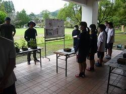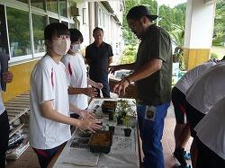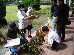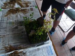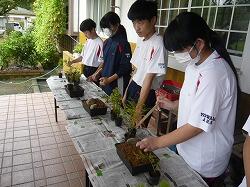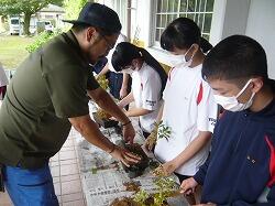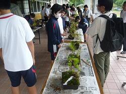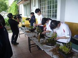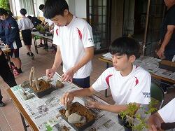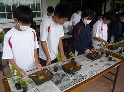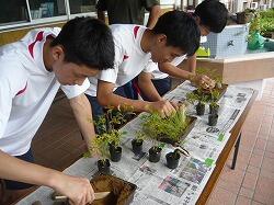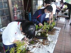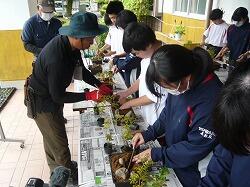 3,4校時目に宮崎県技能士連合会事務局、宮崎県造園緑地協会日南支部の方をお招きして「ミニ造景作り」に挑戦しました。
