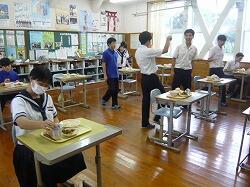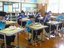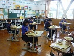 今日の給食は「麦ごはん、豆乳みそ汁、のり塩から揚げ、キャベツ」でした。今日もおいしくいただきました。ありがとうございます。お昼の放送もがんばっています。