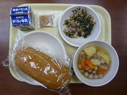 今日の給食は「麦ごはん、パンプキンチャウダー、ミートボールのケチャップ煮、ブロッコリー」でした。今日もおいしくいただきました。ありがとうございます。