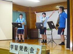 今日は午前中、学習発表会を行いました。「開花」~仲間と共に成功を掴め~をスローガンに、読書ビブリオバトル、英語暗唱、全校合唱、音楽部発表、総合的な学習の時間の発表などを一生懸命、今日まで取り組んできました。総合的な学習の時間の発表では「持続可能な榎原地区」をテーマにして今まで学んだことを発表しました。以下の発表会の様子の一部です。